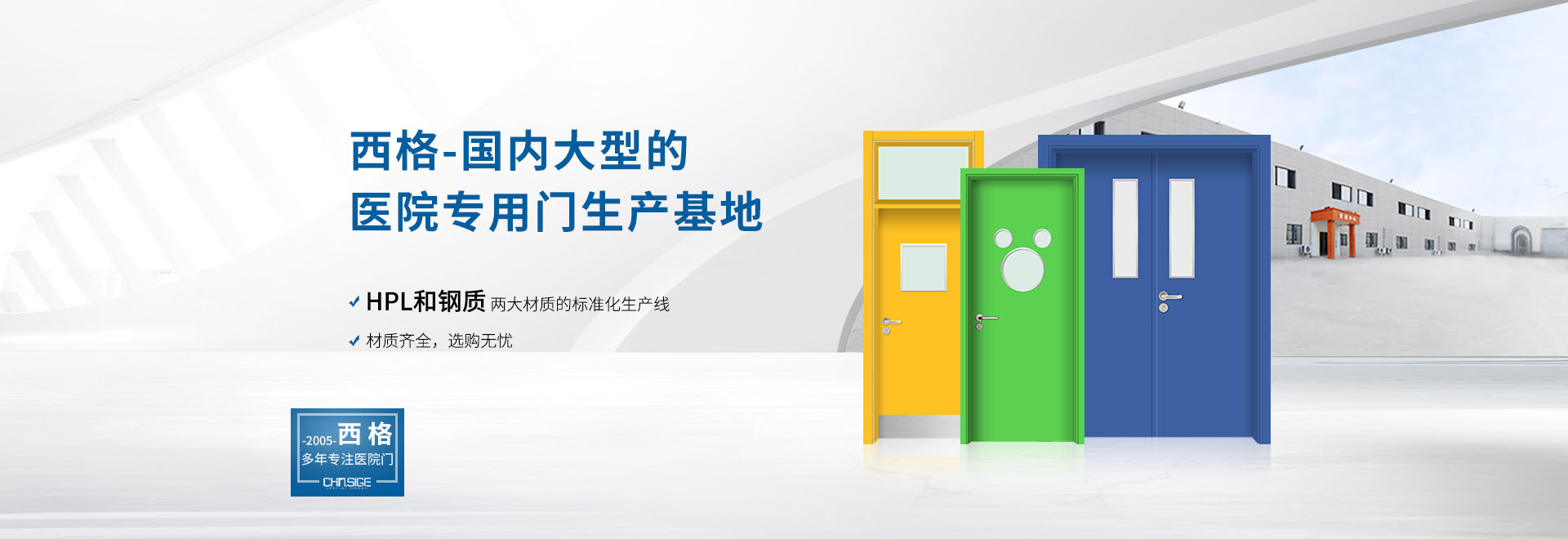 西格,國內(nèi)大型醫(yī)院門生產(chǎn)基地,斥巨資建立 HPL和鋼質(zhì)兩大材質(zhì)的標(biāo)準(zhǔn)化醫(yī)院門生產(chǎn)線, 囊括行業(yè)主流醫(yī)院門品類,材質(zhì)齊全,選購無憂。